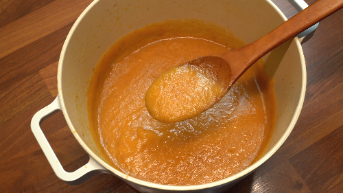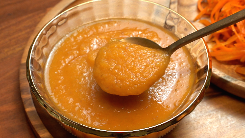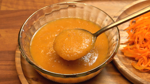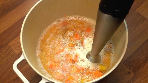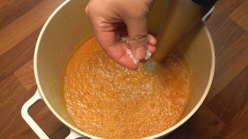 5. 핸드믹서로 곱게 갈아주고, 소금 간 맞추면 당근 고구마죽 만들기 완성!