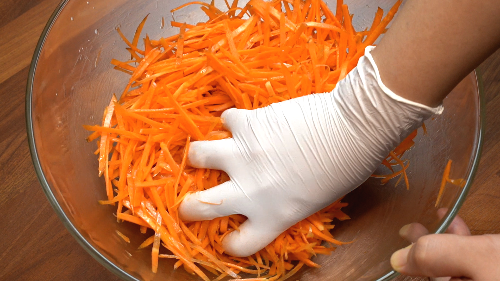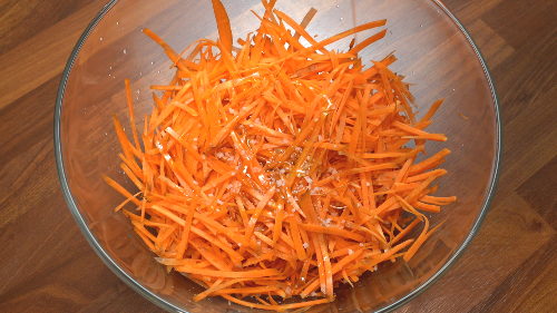 3. 소금이 녹을 때까지 잘 버무려주면 초간단 당근채피클, 당근라페 완성이다!