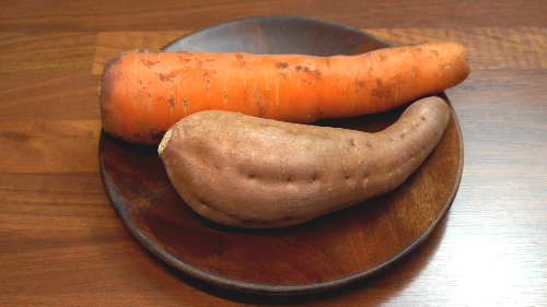 1. 고구마와 당근은 껍질 째 깨끗이 씻는다. 고구마 껍질에는 눈 건강과 피부에 좋은 베타카로틴이 풍부하다.