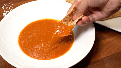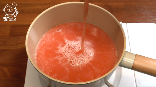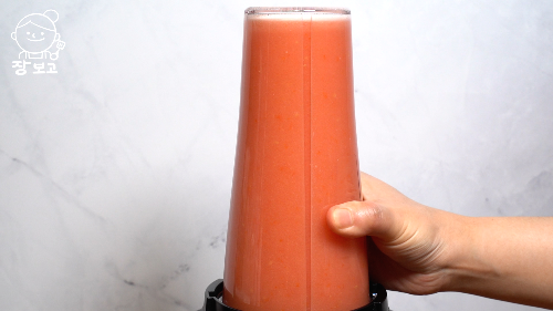 1. 빨갛게 잘 익은 토마토 2개와 갈릴정도의 물 넣고 곱게 간다.