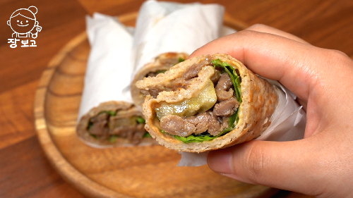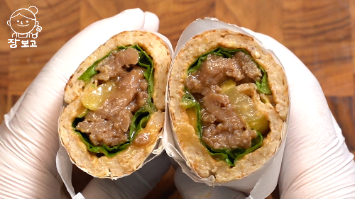 3. 돌돌 말아주고 종이포일에 감싸주면 불고기 샌드위치 완성이다!