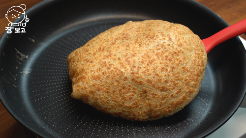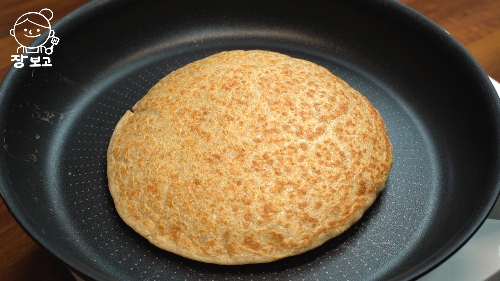 5. 뒤집어서 반대쪽도 잘 익혀준다. 여러 번 뒤집으며 약불로 오래 익히면 풍선처럼 부푼다.