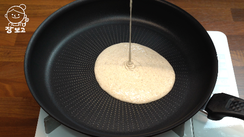 3. 프라이팬 약불로 예열하고 걸쭉해진 반죽물을 붓는다.