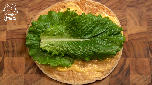 2. 상추 2장 올려주고, 불고기한 줌, 피클 약간 올린다.