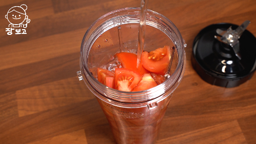 1. 빨갛게 잘 익은 토마토 2개와 갈릴정도의 물 넣고 곱게 간다.