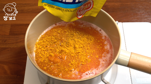 2. 냄비에 부어주고 카레가루 넣고 끓인다.