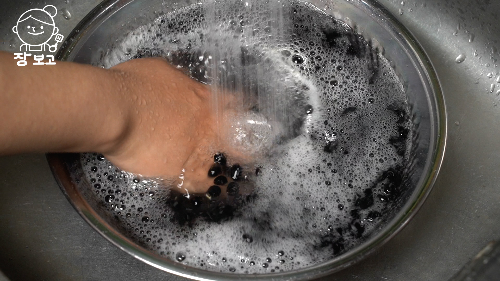 1. 검은콩은 500g 사용. 가볍게 헹궈주고 콩의 3~4배 이상 넉넉히 물을 부어 12시간 불린다 (여름에는 냉장고에서 불리기 / 콩은 4컵 사용)