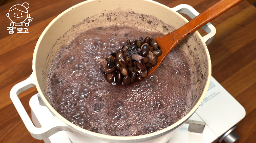 2. 열두 시간이 지나 콩이 통통하게 잘 불려지면 냄비에 콩과 불린 물 + 추가 물 800ml 모두 넣고 강불로 끓인다.