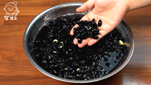 1. 검은콩은 500g 사용. 가볍게 헹궈주고 콩의 3~4배 이상 넉넉히 물을 부어 12시간 불린다 (여름에는 냉장고에서 불리기 / 콩은 4컵 사용)