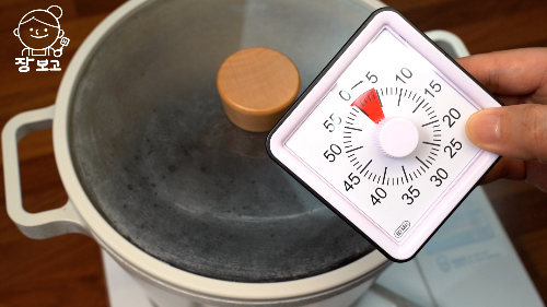 4. 끓는 시점에서 25분간 삶으면 잘 익는다. 불 끄고 뚜껑 닫아 5분간 뜸 들인다.