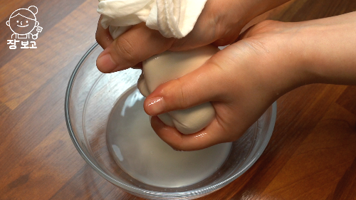 3. 면포에 부침두부 넣고 물기를 꼭 짠다.