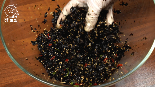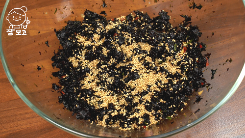 재래김, 홍고추, 청양고추, 다진 마늘, 양조간장, 참치액, 미림, 참기름, 통깨