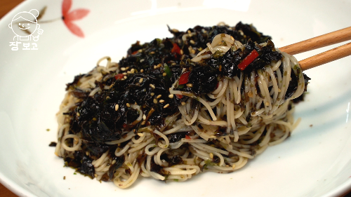 김무침과 참기름 넣고 비벼주면 먹을 때마다 감탄하는 김 비빔국수가 완성된다