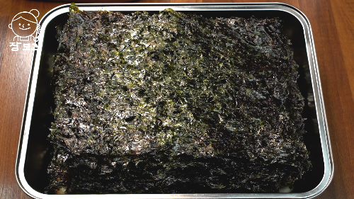 1. 묵은 김은 마른 팬에 앞뒤로 구워 김 비린내를 날린다. 색이 살짝 밝아질 때까지 구워주면 바삭해진다. 김을 한 번 구우면 김의 식감이 덜 질기다.