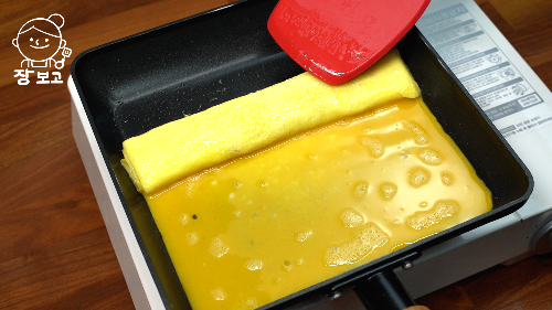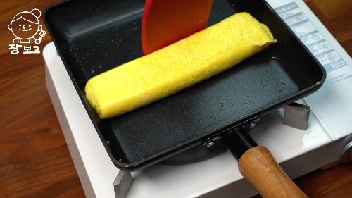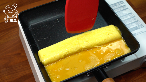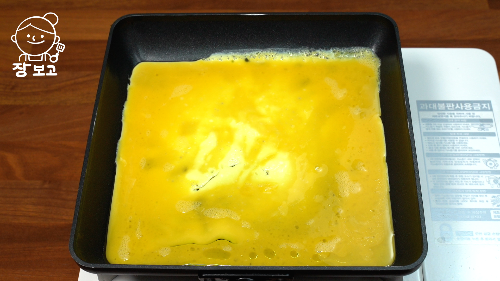 5. 팬에 오일 두르고 약불에서 계란말이를 만든다