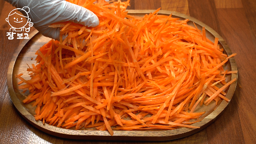 1. 깨끗이 씻은 흙당근은 지저분한 부분만 필러로 제거하고 채친다