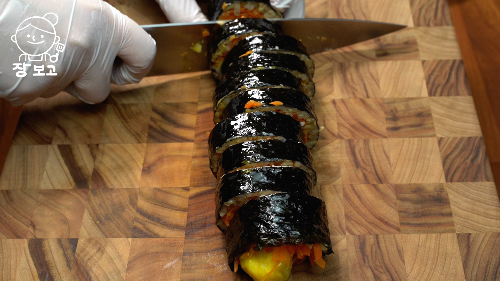 10. 먹기 좋게 썰어주면 전주 당근 김밥 레시피 완성!