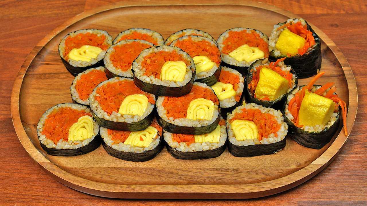 10. 먹기 좋게 썰어주면 전주 당근 김밥 레시피 완성!