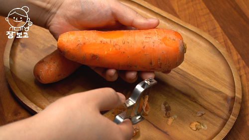 1. 깨끗이 씻은 흙당근은 지저분한 부분만 필러로 제거하고 채친다