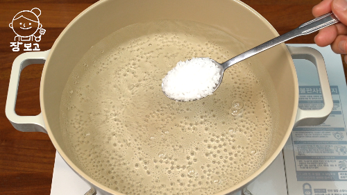 4. 바글 바글 끓으면 딱 3분만 익힌 다음 불 끄고 참기름 1큰술 넣고 섞는다