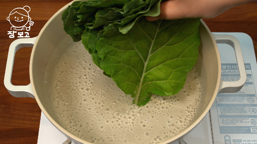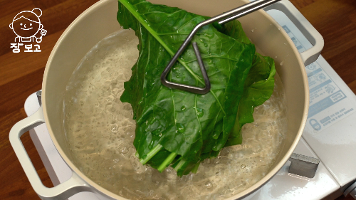1. 팔팔 끓는 물에 소금 1큰술, 케일 15장 넣고 30초만 앞뒤로 데친다