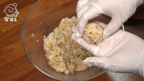 4. 밥은 한입 크기로 동그랗게 모양 잡는다
