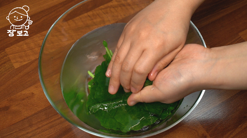 2. 데친 케일은 찬물에 담가 물기를 꼭 짠다