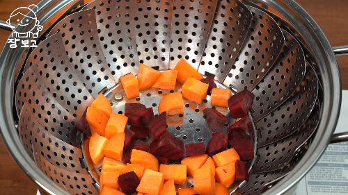 1. 당근 100g과 비트 30g은 썰어서 찜기에 4분간 찐다