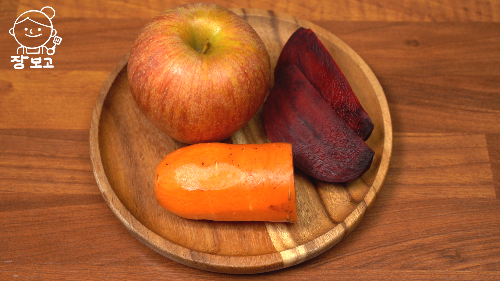 1. 사과 100g, 당근 100g, 비트 100g은 갈기 좋게 썬다