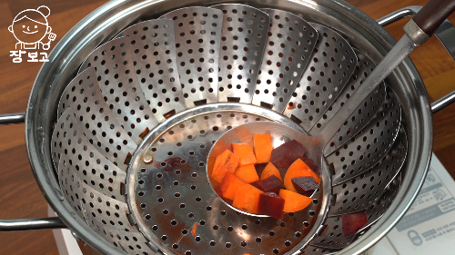 1. 당근 100g과 비트 30g은 썰어서 찜기에 4분간 찐다
