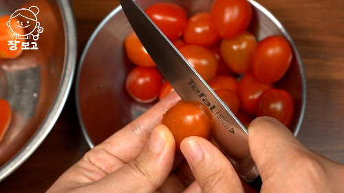 1. 방울토마토는 끝 부분에 한 번 칼질 낸다