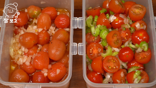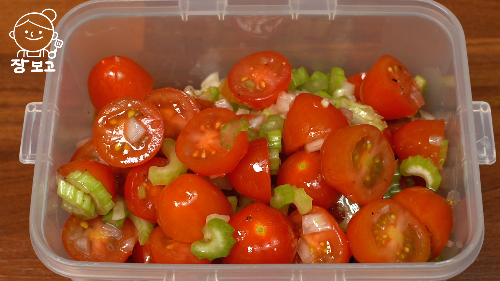 방울토마토, 양파, 매실청, 샐러리, 레몬즙, 올리고당, 밀폐용기