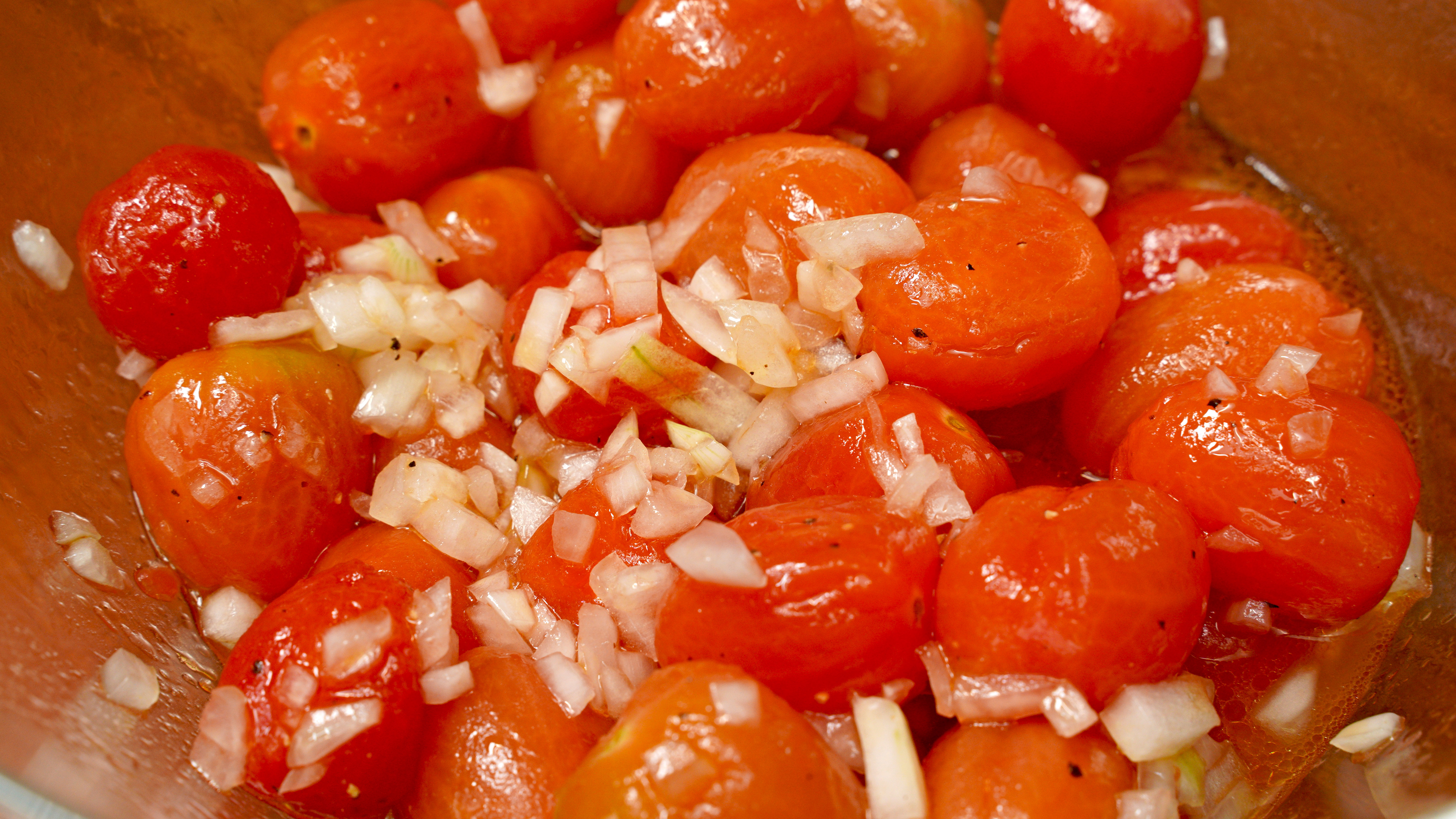 껍질 있는 생 토마토는 아삭한 샐러드 느낌이다!