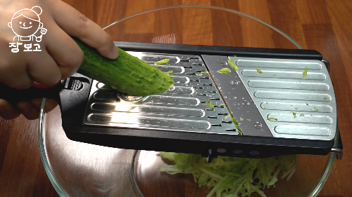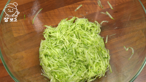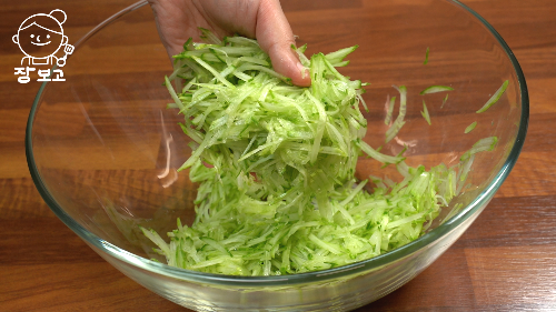 1. 오이는 껍질 벗기지 않고 그대로 얇게 채친다