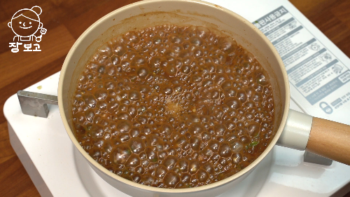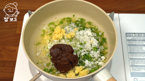 2. 다진 마늘 1큰술, 된장 2큰술, 미림 2큰술, 참치액 1큰술, 물 1/2컵 넣고 강불로 켜서 졸이듯이 볶는다
