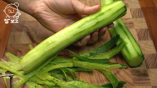 1. 오이는 양끝을 날리고 필러로 가볍게 껍질을 벗긴다