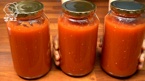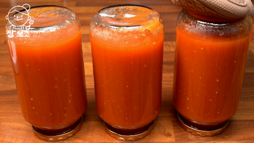 6. 다음날부터 똑바로 보관하면 상온에서 1년간 먹을 수 있는 토마토 캔닝이 완성된다.