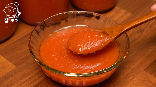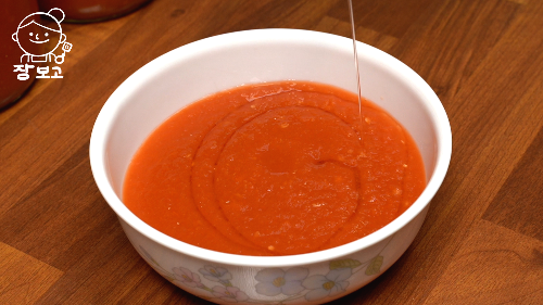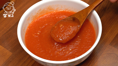 3. 세 번째는, 비빔밥 소스로 먹는 것이다. 토마토 캔닝에 고추장을 섞어주면 나트륨 배출에 도움 되는 저당 고추장이 완성된다.