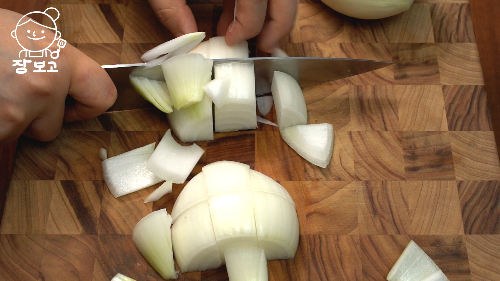 2. 적당히 썰어 믹서기에 넣고 간다. 뭉근하게 끓일 거라 곱게 갈 필요 없다.