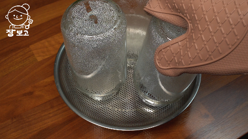 3. 뜨거운 병은 찬물에 절대 씻지말고 그대로 꺼내 채반에 거꾸로 세워 물기가 날아가면 바로 사용