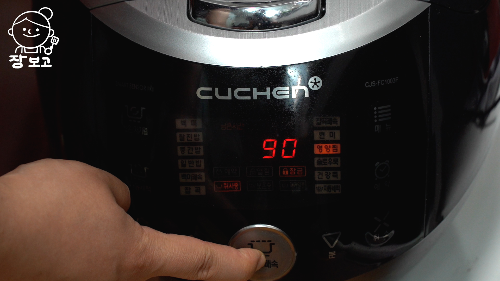 7. 밥솥 뚜껑을 닫고 만능찜 모드 90분으로 돌린다. 만능찜 모드가 없다면 취사를 두 번 하면 된다