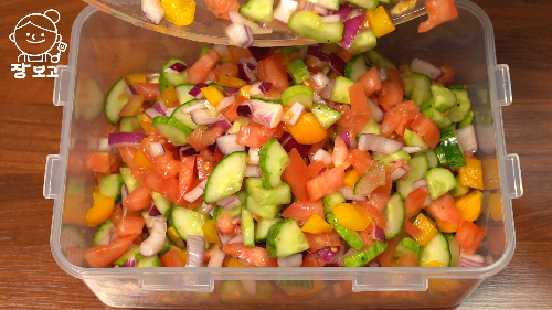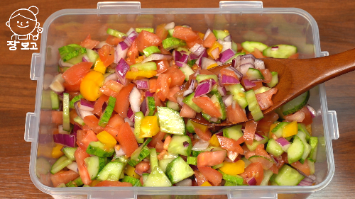 완성 된 쉬라즈 샐러드는 밀폐용기에 담아 최소 1시간 냉장 숙성, 최대 일주일 내로 섭취하는 게 좋다.