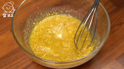 5. 볼에 식초 4 큰술, 매실청 3 큰술, 올리고당 1 큰술, 다진 마늘 1 큰술, 소금 1 작은술, 연겨자 2/3 큰술, 간 참깨 2 큰술 넣고 잘 저어주면 겨자소스 황금레시피가 완성된다