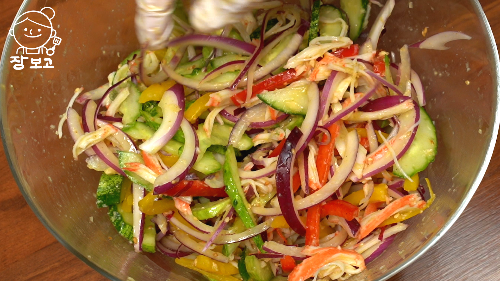 7. 조물 조물 무쳐 주면 크래미 맛살 오이냉채 만들기 완성!