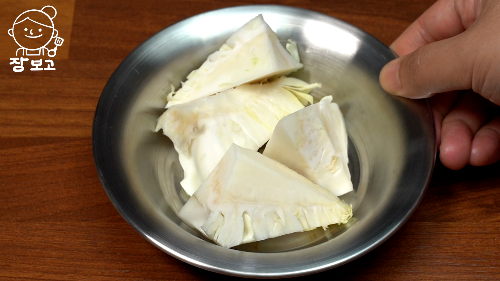 2. 양배추는 4등분하고 물에 5분 이상 담가 흐르는 물에 씻는다