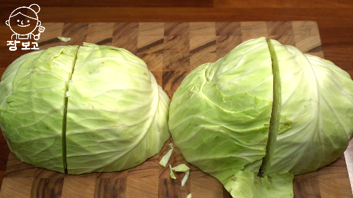 2. 양배추는 4등분하고 물에 5분 이상 담가 흐르는 물에 씻는다