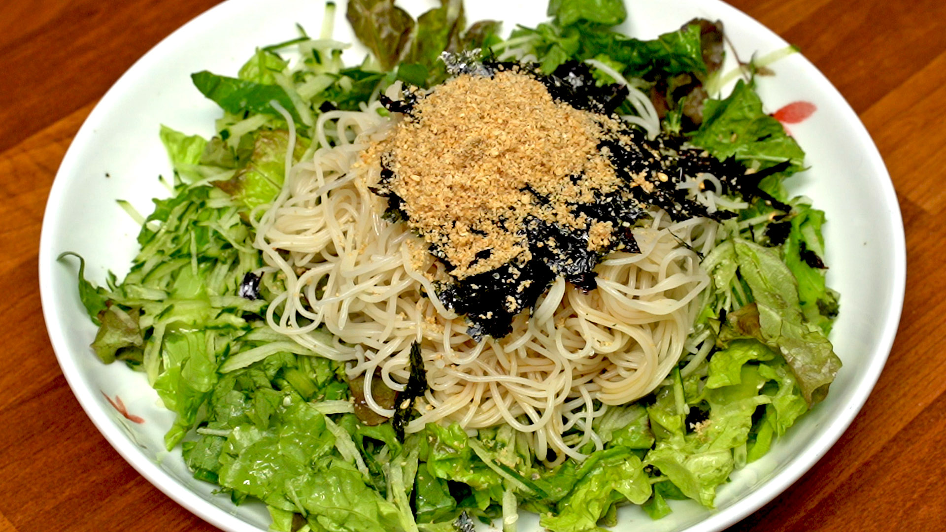 청오이, 상추, 콩 담백 면, 양조간장, 매실청, 참기름, 김가루, 동치미육수