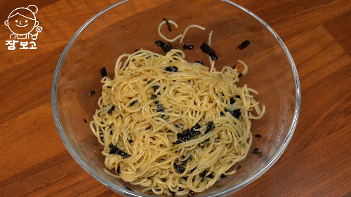 면에 레시피 절반의 양념과 김가루를 넣고 간이 배도록 조물조물 무친다