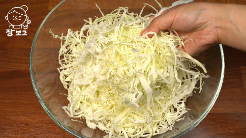 2. 양배추는 곱게 채친다. 양배추에는 비타민 U와 K가 풍부해 위 점막을 보호하고 염증을 감소시키며 뼈 건강에 도움을 준다.