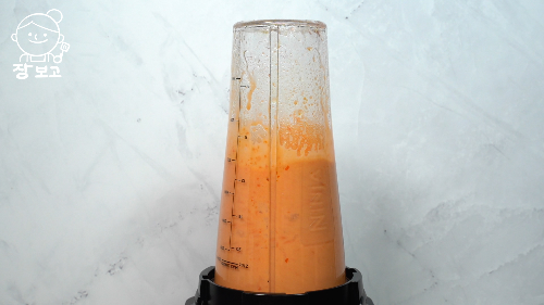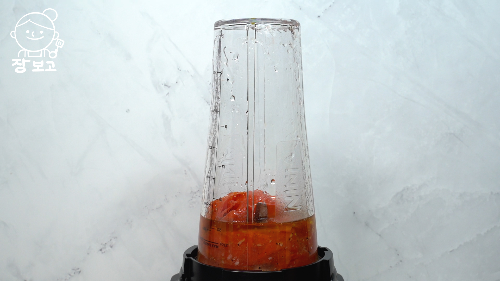 4. 믹서기에 토마토 껍질을 넣는다. 토마토에 간이 잘 배게 하기위해 껍질을 벗기는데 토마토 껍질에는 영양이 풍부하여 버리지 않는다. 이렇게 먹으면 입에 걸리는 것 없이 영양까지 다 먹을 수 있다